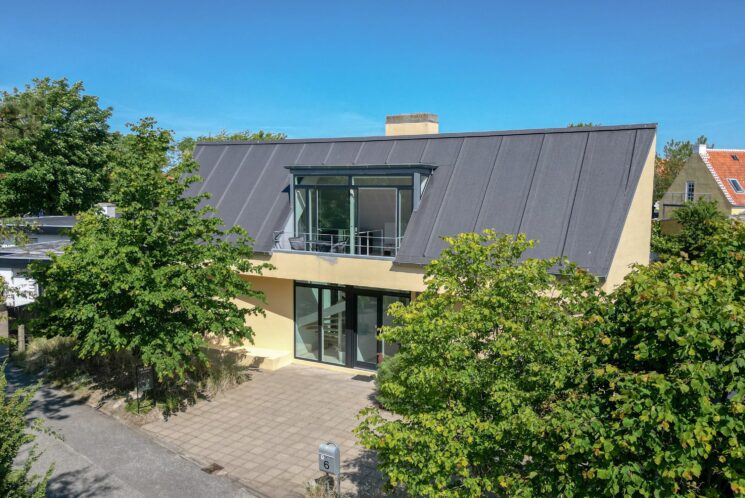 Boligen er opført med arkitektonisk finesse og stor sans for detaljen. Det klassiske længehus brydes af en særpræget tværbygning bagude, som med sin sekskantede form giver huset sin helt egen karakter. Her forenes funktionalitet og æstetik i et moderne udtryk med klare referencer til Skagens særlige byggeskik.