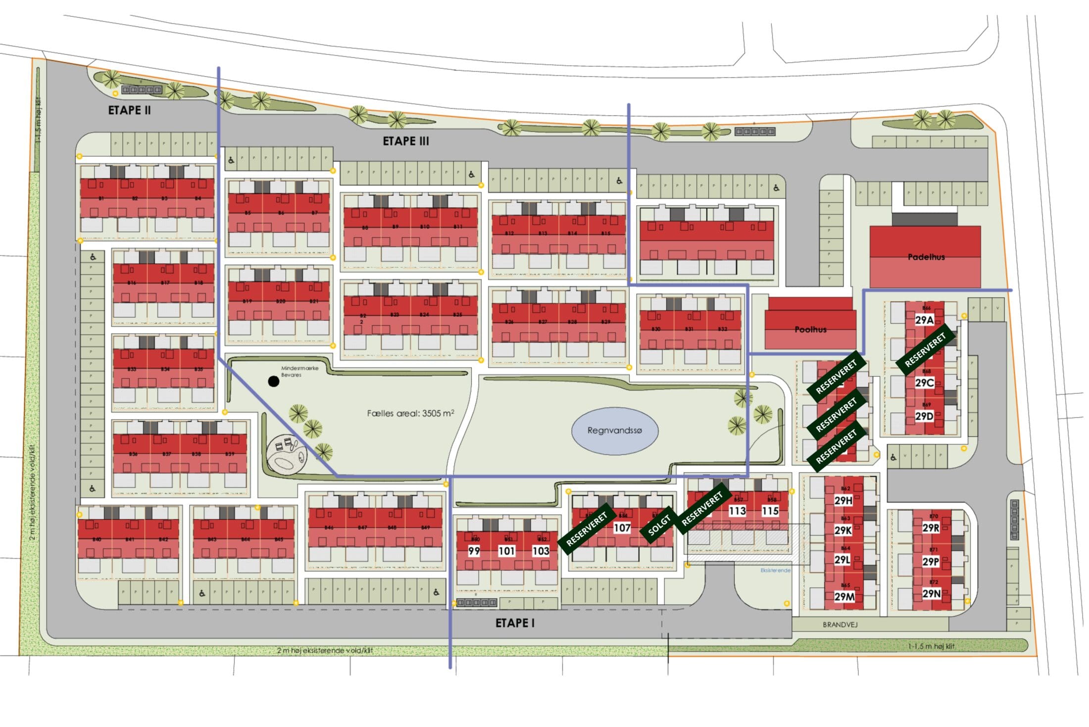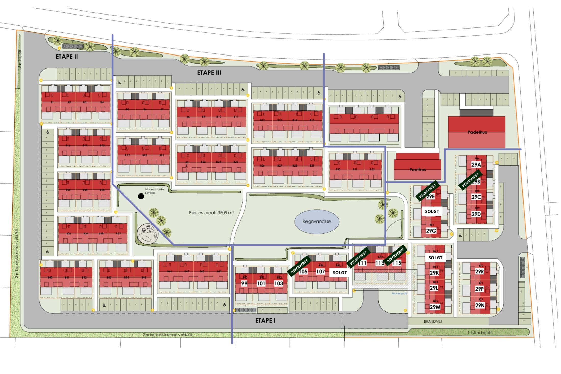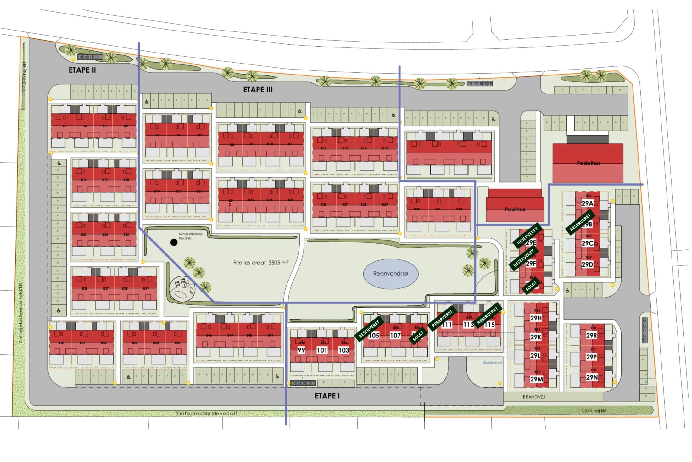 Fællesarealerne er tænkt som en naturlig forlængelse af boligen. Her kan du nyde poolhuset på varme sommerdage, mødes til petanque eller bare opholde dig i grønne, rolige omgivelser. -